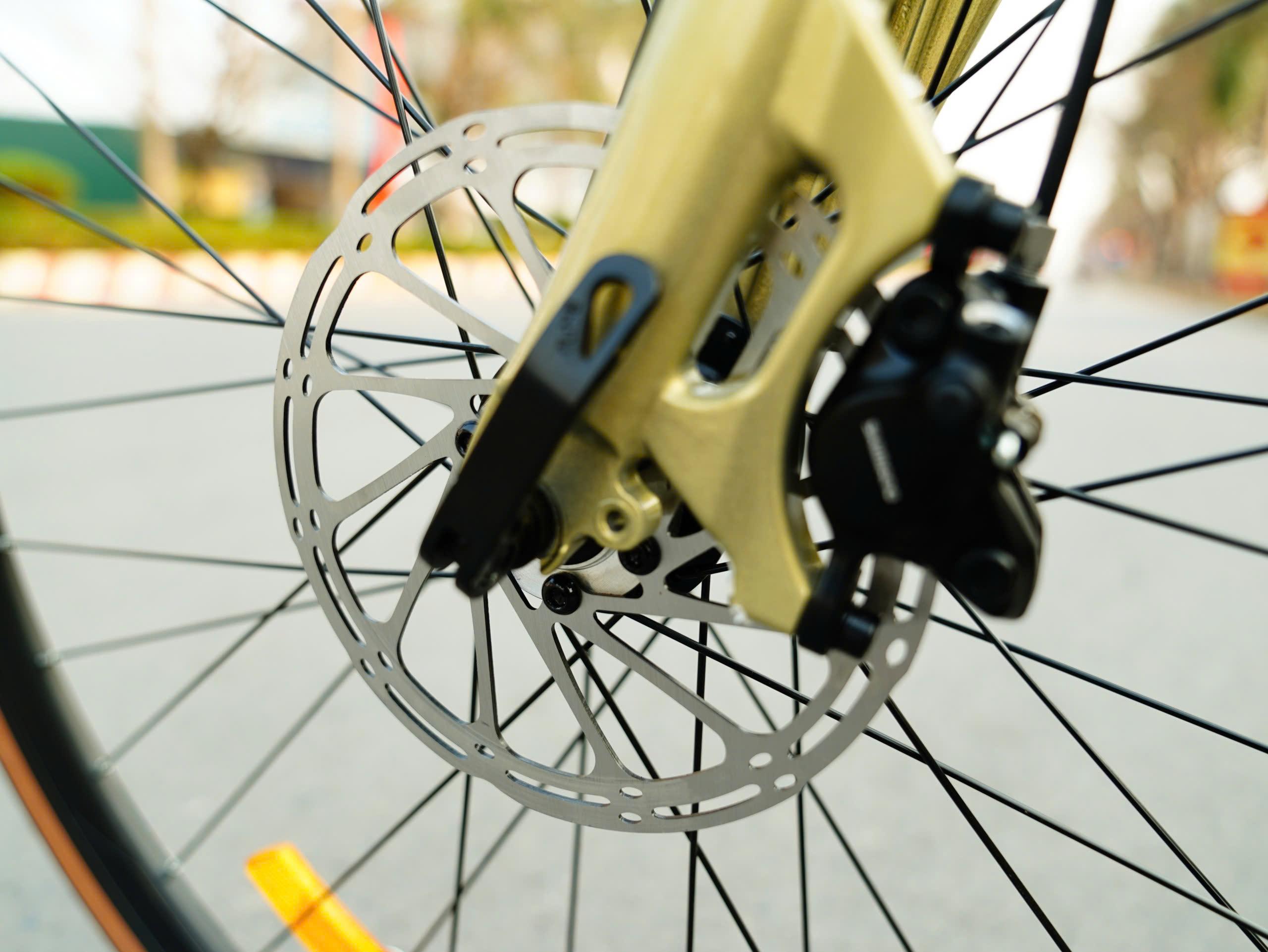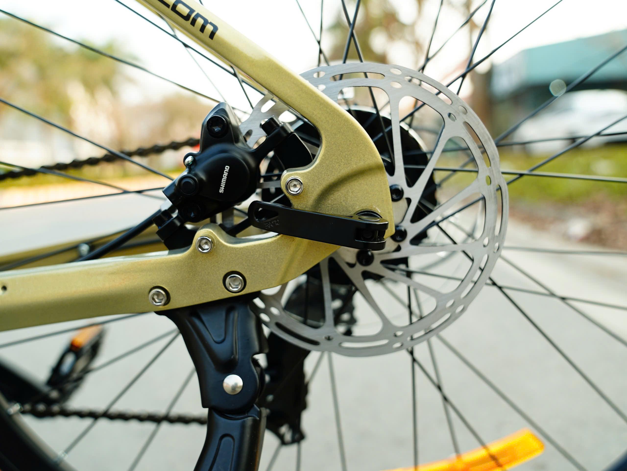 Nhờ hệ thống phanh dầu Shimano, người lái có thể an tâm hơn khi di chuyển trong nhiều điều kiện đường khác nhau.