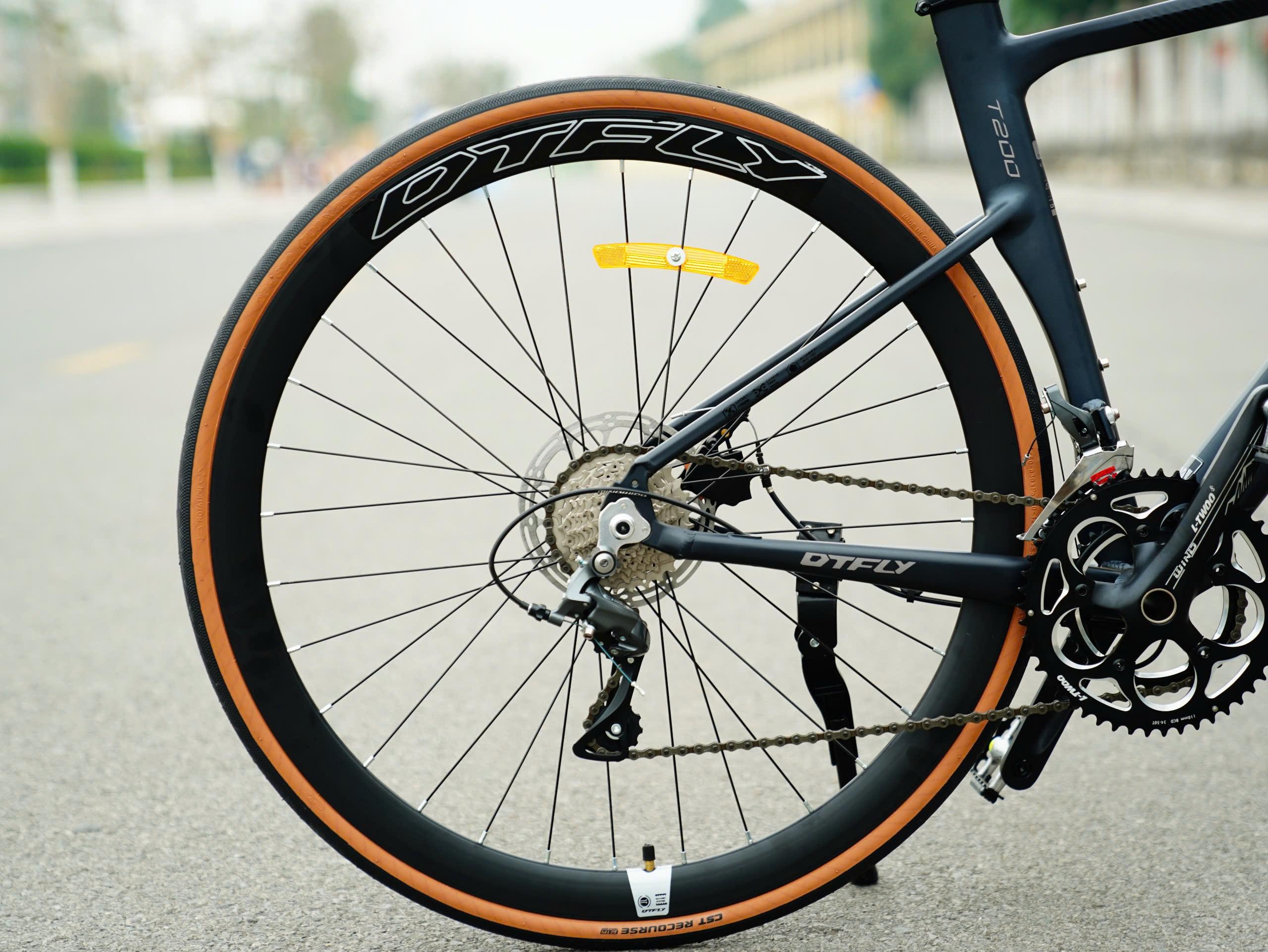 - Vành nhôm DTFLY, lốp CST RECOURSE 700x28C bám đường tốt.